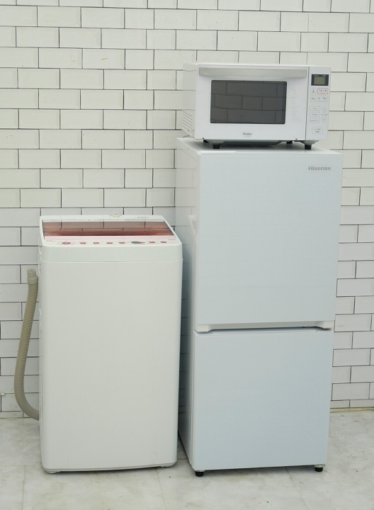 134L、5.5Kg/19年、20年、19年/Hisense、Haier、Haier製/(冷蔵庫、洗濯機、電子レンジ)中古家電3点...