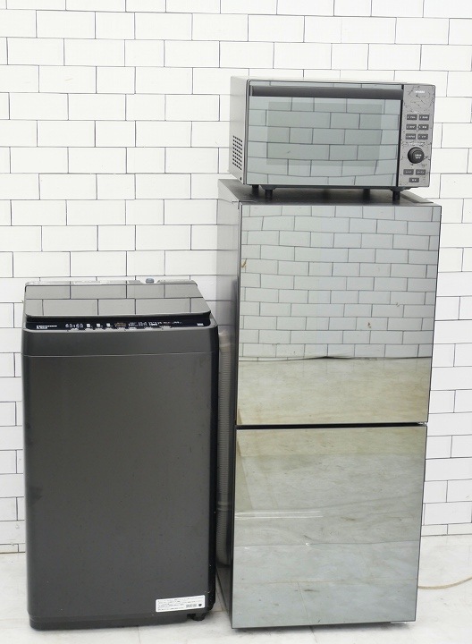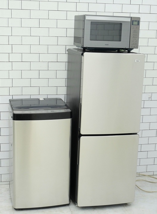 135L、6kg/22年、22年、23年/アクア、アクア、Haier製/(冷蔵庫、洗濯機、フラット型電子レンジ)中古家電3点セット