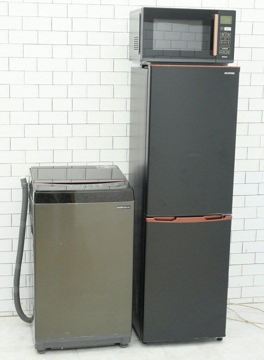 121L、6kg/22年、22年、24年/Haier、ニトリ、アイリスオーヤマ製/(冷蔵庫、洗濯機、電子レンジ)中古家電3点セット