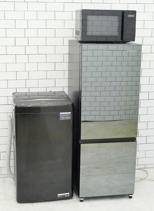 162L、5.5Kg/23年、24年、25年/Hisense、Haier、ニトリ製/(冷蔵庫、洗濯機、電子レンジ)中古家電3点セッ...