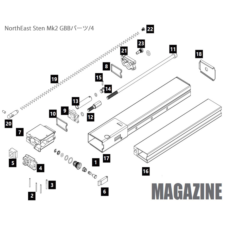 NorthEast Sten Mk2 GBBパーツ/4-18 マガジンボトム【品番:NEA-STENMK2-4-18】*メーカー純...
