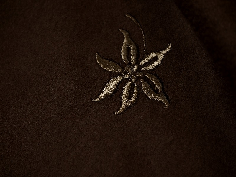 閉店処分大セール お買得 【カシミヤウール/フラワー刺繍】 日本製生地 茶 140cm巾2.5m(スーツ、ワンピース分) 2181...