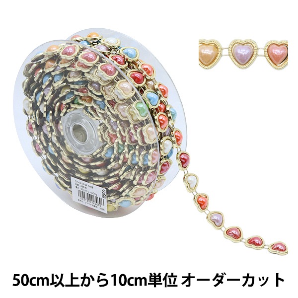【数量5から】 手芸ブレード 『イミテーションブレード 幅約1.6cm ハート マルチ GY-43-18-44』