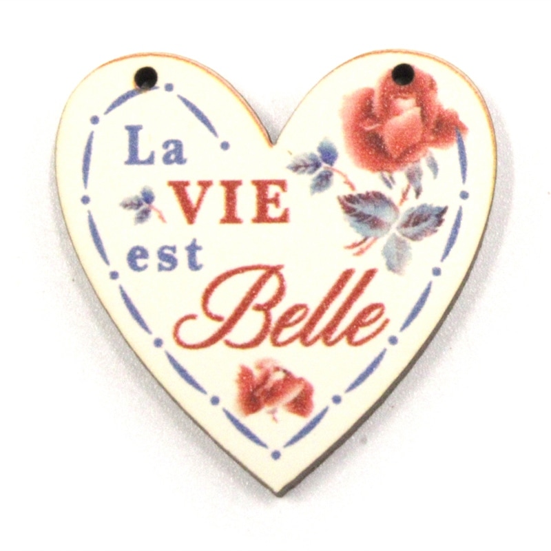 フランス製 木製ボタン 2つ穴 (LA VIE EST BELLE) アトリエ・ボヌール・ドゥ・ジュール