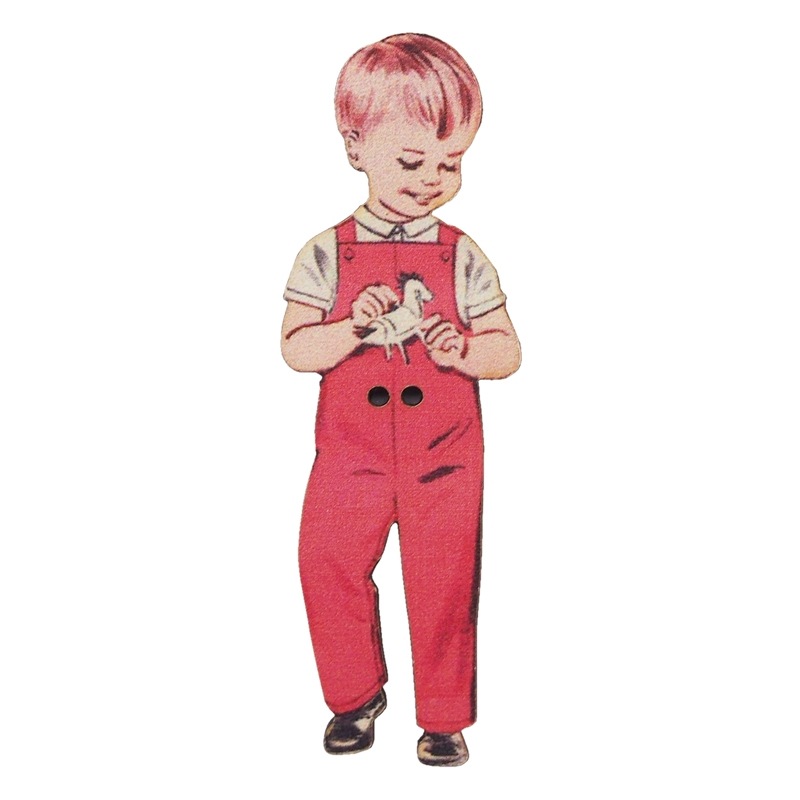 フランス製 木製ボタン 2つ穴 (赤いオーバーオールの男の子) アトリエ・ボヌール・ドゥ・ジュール
