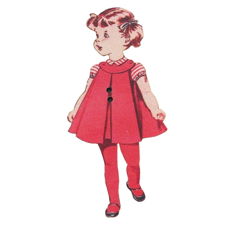 フランス製 木製ボタン 2つ穴 (赤いドレスの女の子) アトリエ・ボヌール・ドゥ・ジュール