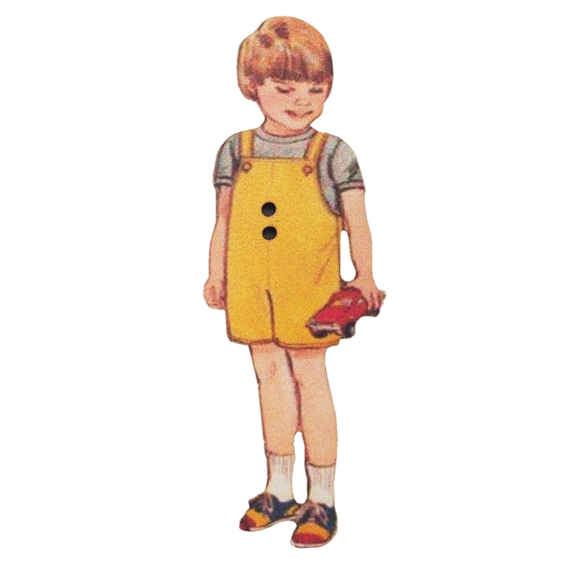 フランス製 木製ボタン 2つ穴 (黄色いパンツの男の子) アトリエ・ボヌール・ドゥ・ジュール