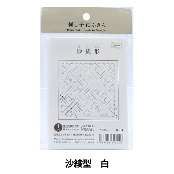 刺しゅう布 『刺し子 花ふきん 布パック 沙綾型 白 4』 Olympus オリムパス