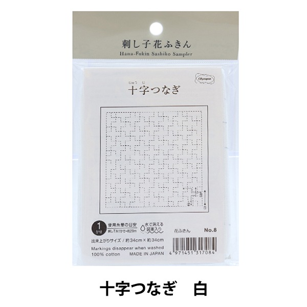 刺しゅう布 『刺し子 花ふきん 布パック 十字つなぎ 白 8』 Olympus オリムパス