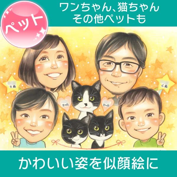 ペット 家族の似顔絵 癒し系似顔絵 犬 猫 うさぎなど きよら 写真から似顔絵 贈り物 ギフト 贈呈用 色紙 イラスト おすすめ ...