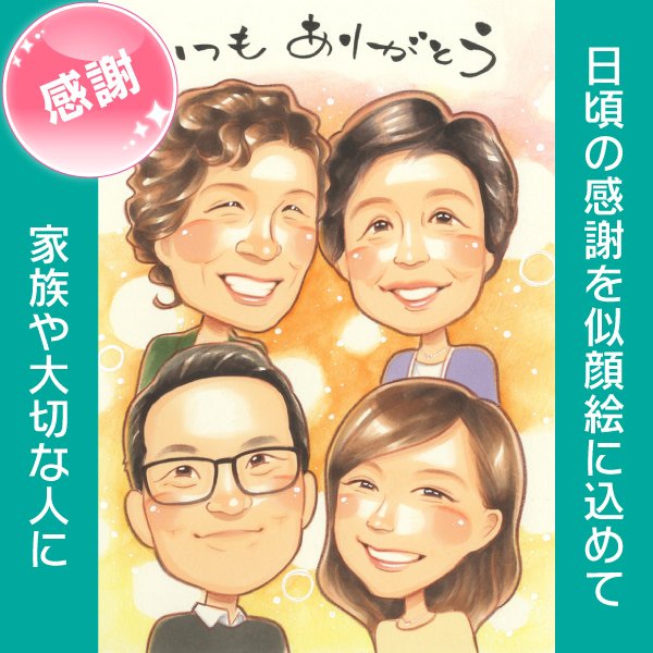 心をつかむ贈り物 大切な人に贈るプレゼント似顔絵 還暦や米寿などの長寿のお祝いにぴったりの家族の似顔絵です 還暦60歳 古希70歳...