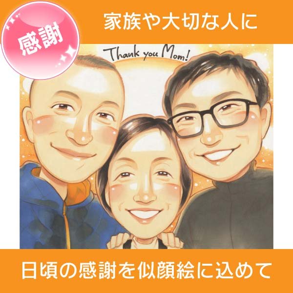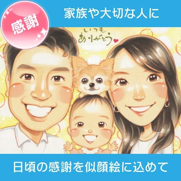 贈る人も贈られる人もみんな笑顔に!大切な方への感謝の想いを似顔絵にして贈りませんか?ペットも一緒にお描きできます 感謝 母の日 家...