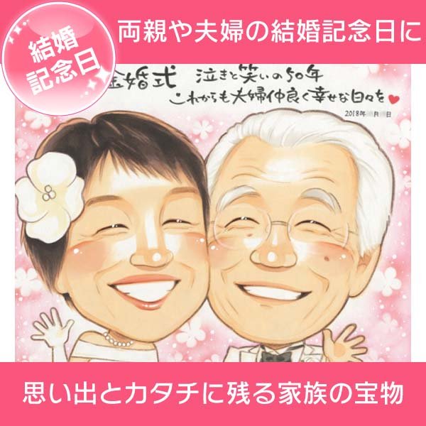 結婚記念日 両親 夫婦 思い出に残る記念似顔絵 きよら 結婚記念日 金婚式 銀婚式 真珠婚式 ダイヤモンド婚式 ルビー婚 両親 父...
