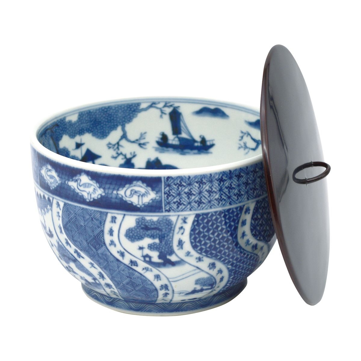 食籠 染付 網目 高野昭阿弥作(桐箱)(直径21.5x高さ11cm)