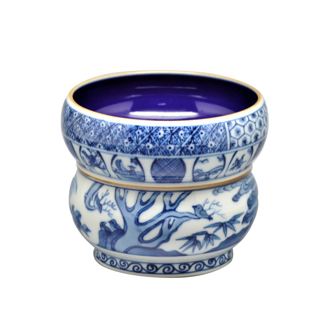 水指 染付 昆布文 景徳鎮 王懐英作 (桐箱)