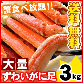ズワイガニ足 大量3キロ (約10肩前後入) 蟹 カニ かに ずわい蟹 送料無料(沖縄宛は別途送料2,200円頂戴いたします)
