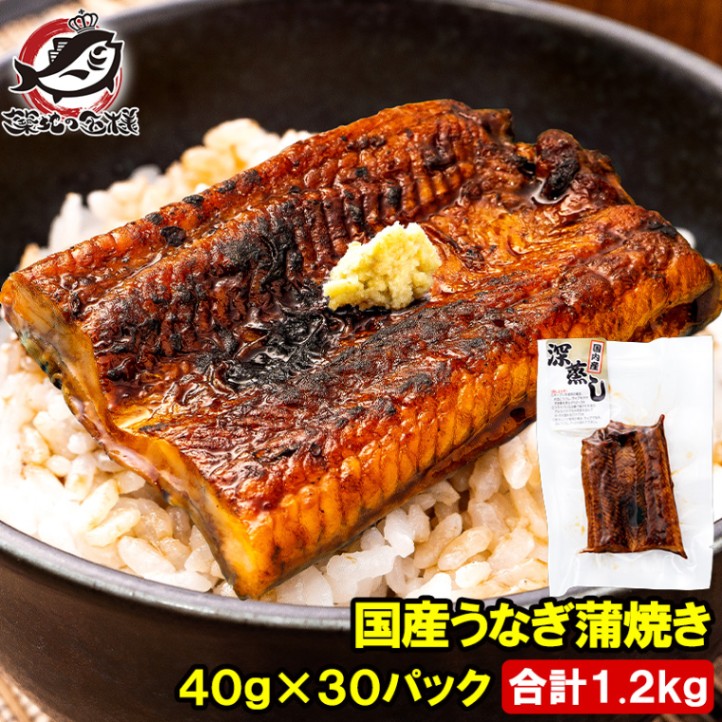 送料無料 うなぎ蒲焼き カットうなぎ 国産うなぎ 40g×30パック 合計1200g 食べきりサイズ