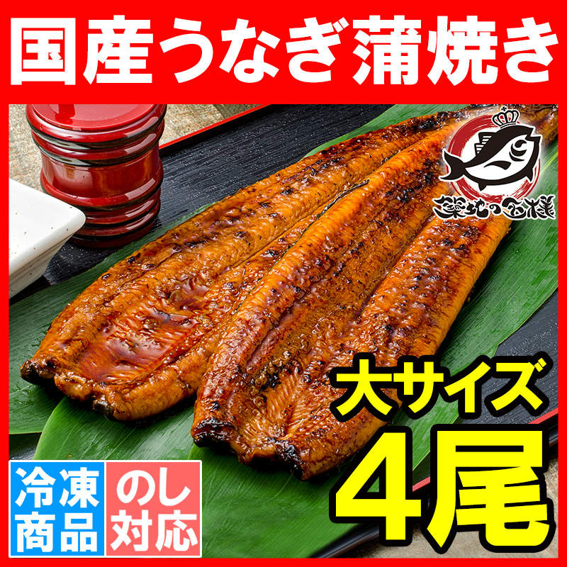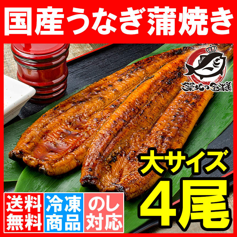 送料無料 特大うなぎ蒲焼き 平均250g前後×4尾 (国産うなぎ ウナギ 鰻)