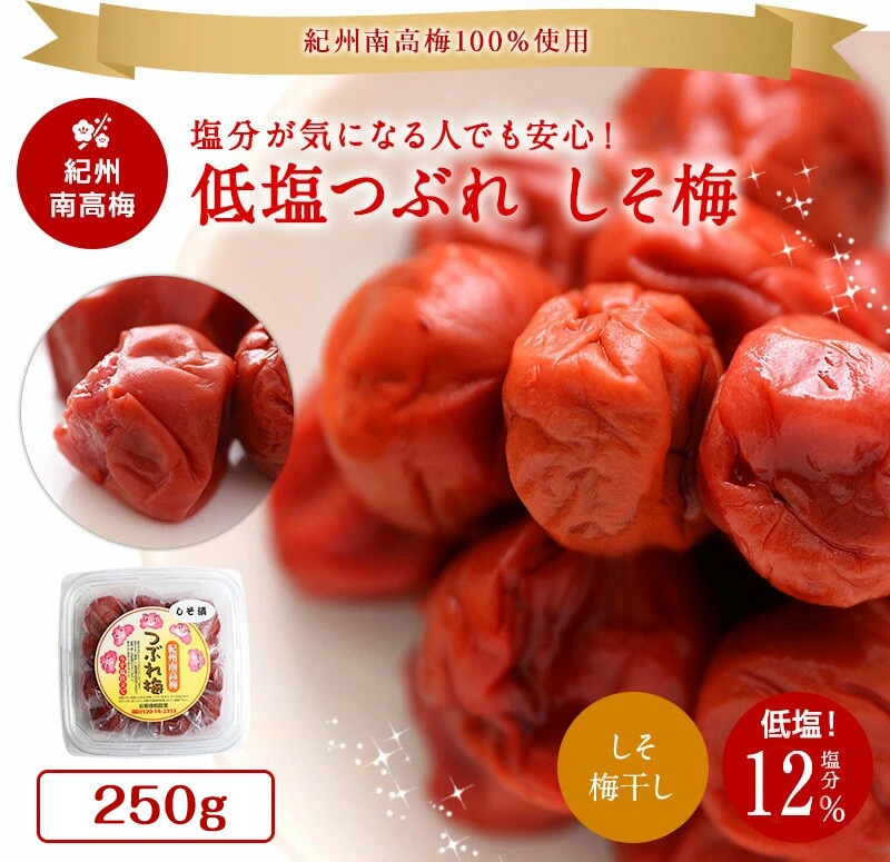紀州南高梅 低塩つぶれ 梅干ししそ梅250g(塩分12%)5,400円以上で送料無料※北海道、沖縄除く