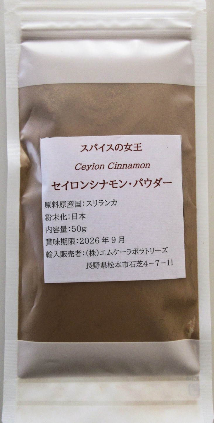 スパイスの女王;セイロンシナモン・パウダー、50g