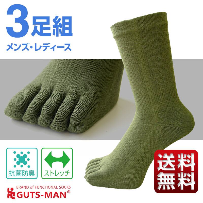 【日本製】 送料無料・3足組 抗菌防臭 五本指ソックス 23-29cm ガッツマン 巽繊維工業所 FE-02
