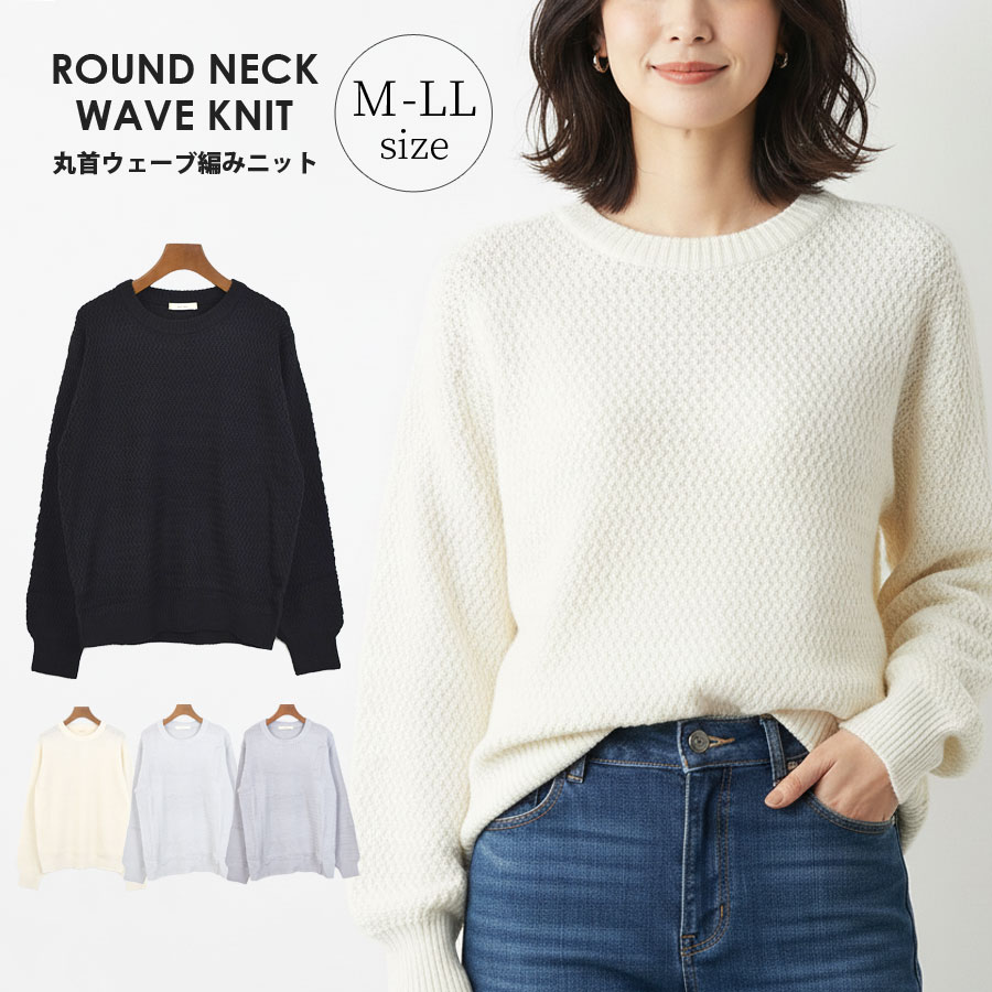ニット レディース きれいめ 秋冬 セーター 丸首 トップス プルオーバー クルーネック ゆったり 長袖 【送料pt100】