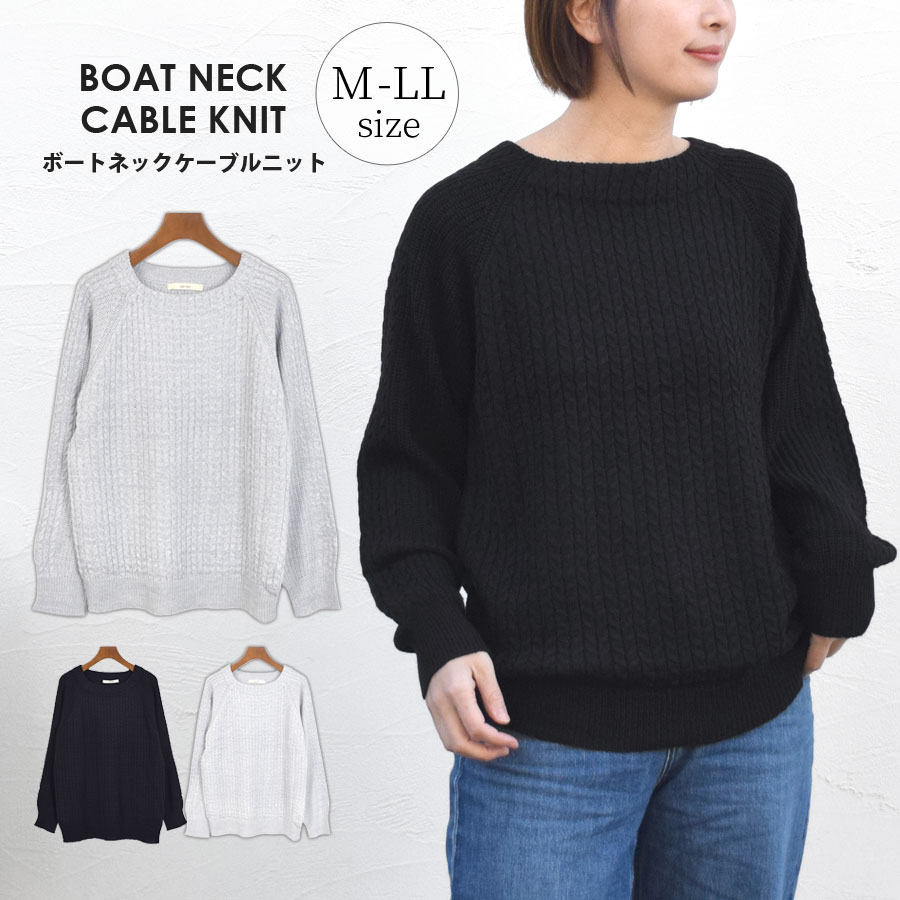 ニット レディース 秋冬 きれいめ ボートネック ケーブル編み ケーブルニット トップス 長袖 セーター 【送料pt100】