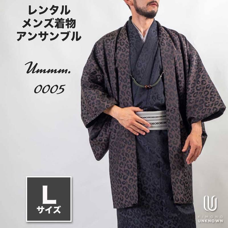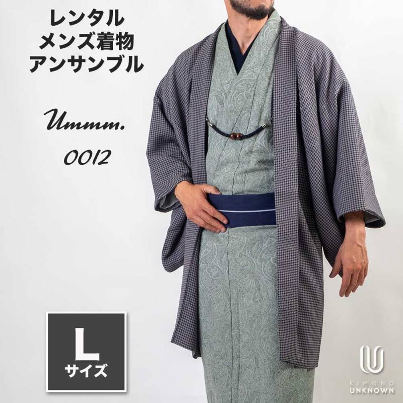 |往復送料無料|【レンタル】メンズ着物アンサンブル【対応身長170cm~180cm】【 Lサイズ】フルセットーUmmm.0012|...