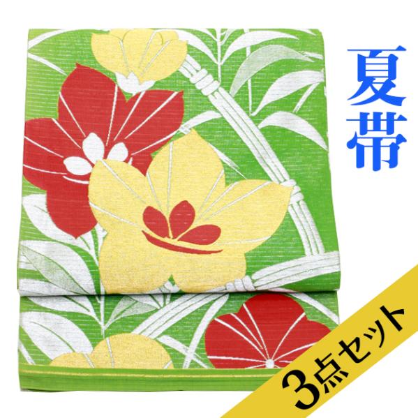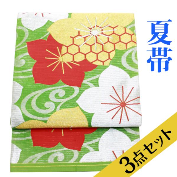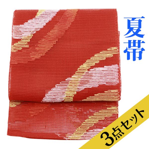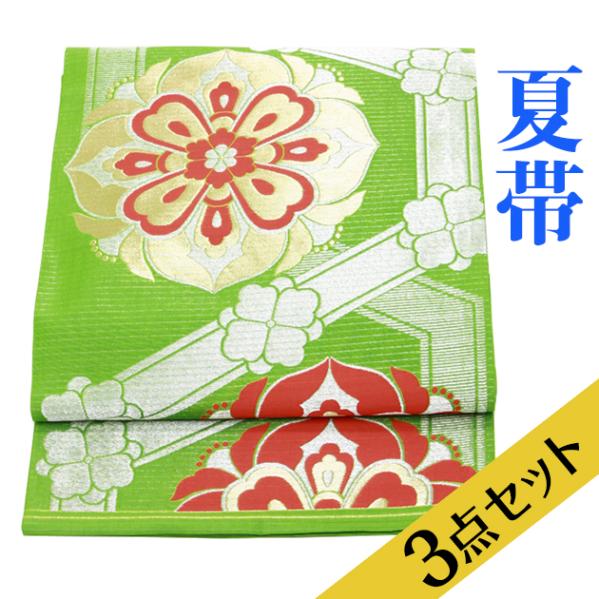 〔夏帯 名古屋帯 レンタル〕帯揚げ+帯〆3点セット 絽 帯 夏帯 名古屋帯レンタル お出かけ ro-a81