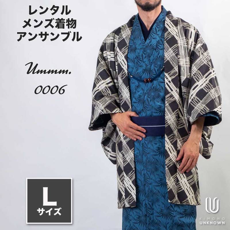 |往復送料無料|【レンタル】メンズ着物アンサンブル【対応身長170cm~180cm】【 Lサイズ】フルセットーUmmm.0006|...