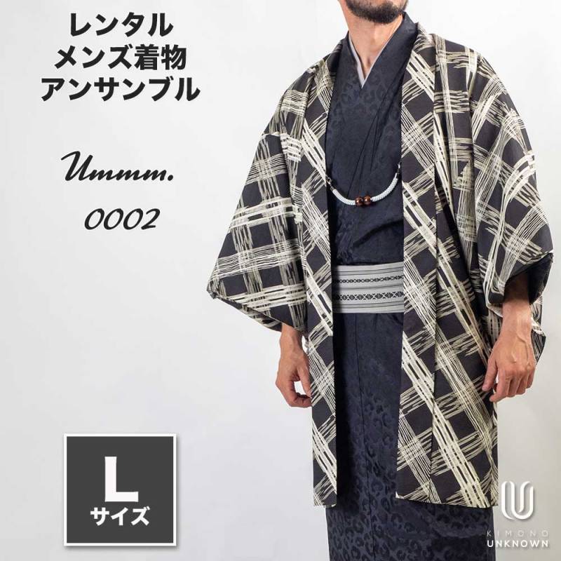 |往復送料無料|【レンタル】メンズ着物アンサンブル【対応身長170cm~180cm】【 Lサイズ】フルセットーUmmm.0004|...