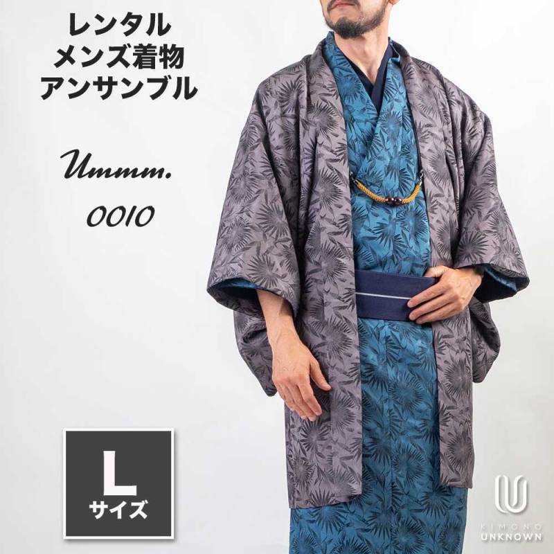 |往復送料無料|【レンタル】メンズ着物アンサンブル【対応身長170cm~180cm】【 Lサイズ】フルセットーUmmm.0010|...