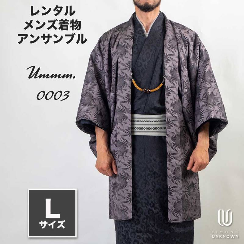|往復送料無料|【レンタル】メンズ着物アンサンブル【対応身長170cm~180cm】【 Lサイズ】フルセットーUmmm.0003|...