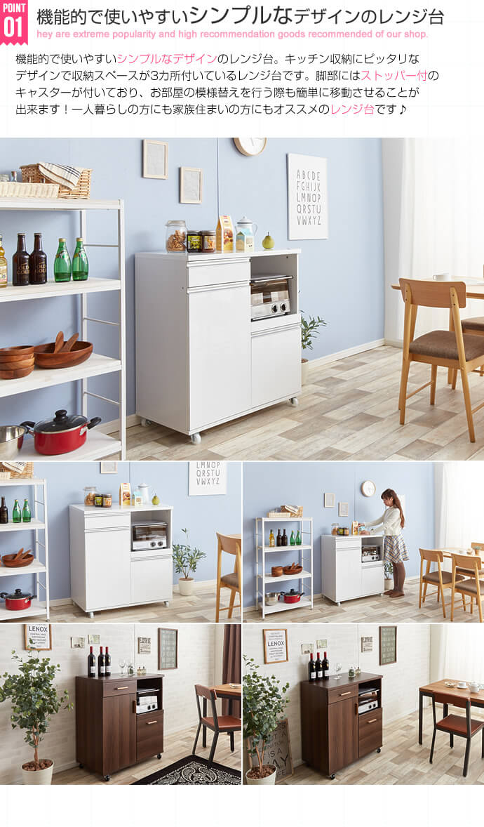 レンジ台 キャスター付き 80cm 92005_WH ホワイト