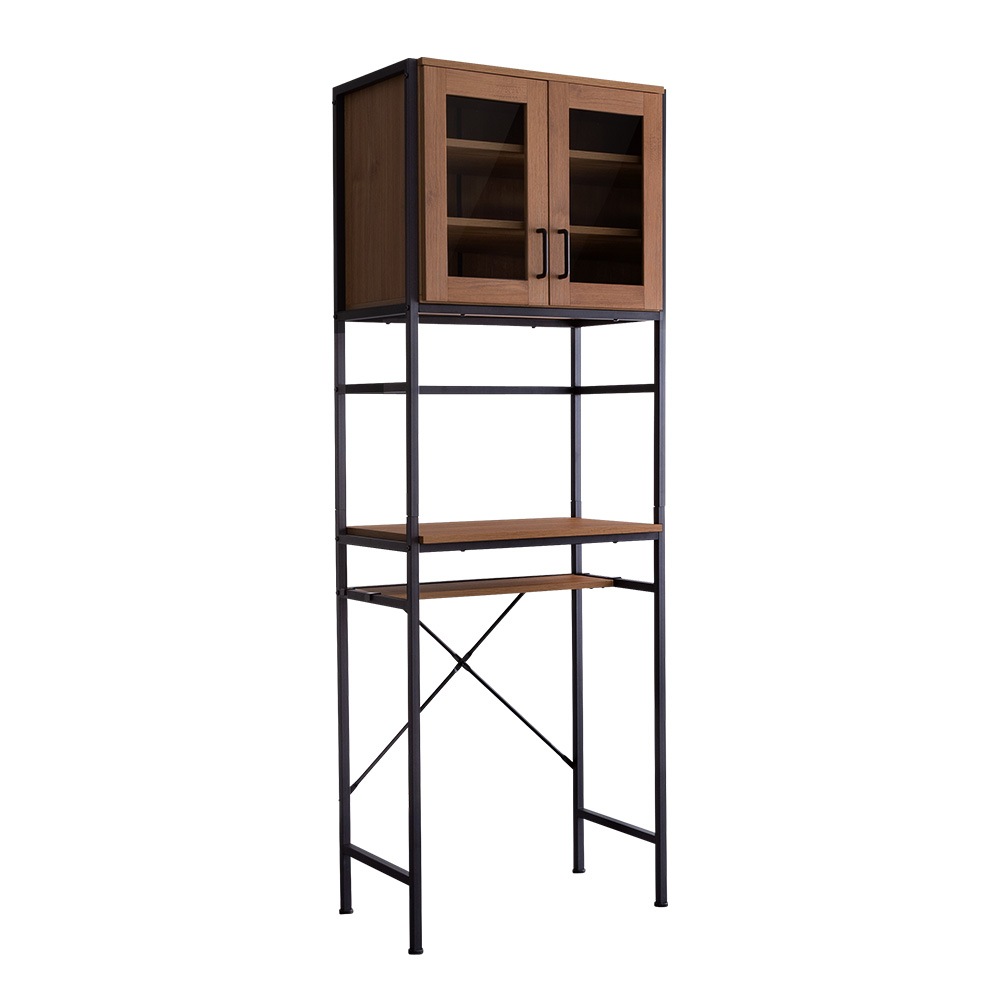 ヴィンテージ調マグネットゴミ箱上レンジラック ブラックガラス【GREACK-グリック-】 MGK-T3WRR-WAL ウォールナッ...