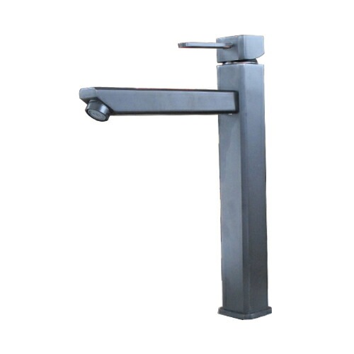 洗面水栓 蛇口 水栓金具 単水栓 シングルレバーハンドル トールタイプ ブラック(黒) [奥行24×吐水口高21cm] INK-0...