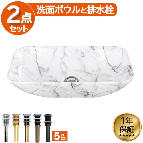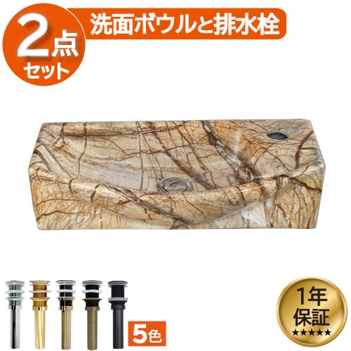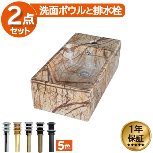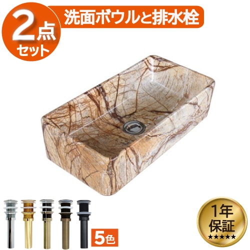 洗面ボウル 陶器 オンカウンター 置き型 ベッセル オーバーフロー無し スクエア 石目柄 マーブル 幅46×奥行22×高12cm ...