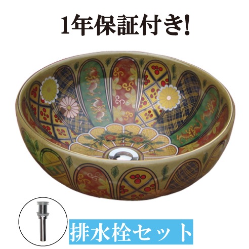 洗面ボウル 陶器 オンカウンター 置き型 ベッセル ラウンド ボタニカルデザイン 幅40cm INK-0403104H