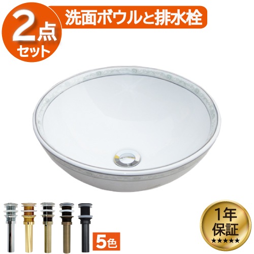 洗面ボウル 陶器 オンカウンター 置き型 ベッセル ラウンド 直径36×高12cm INK-0411009H