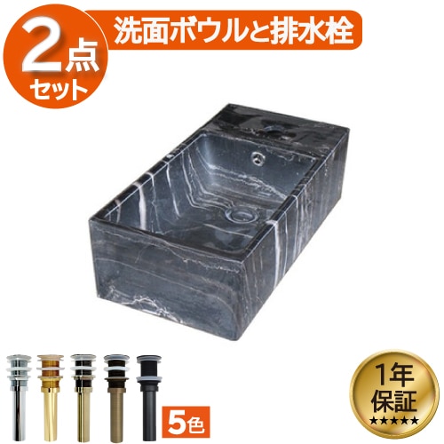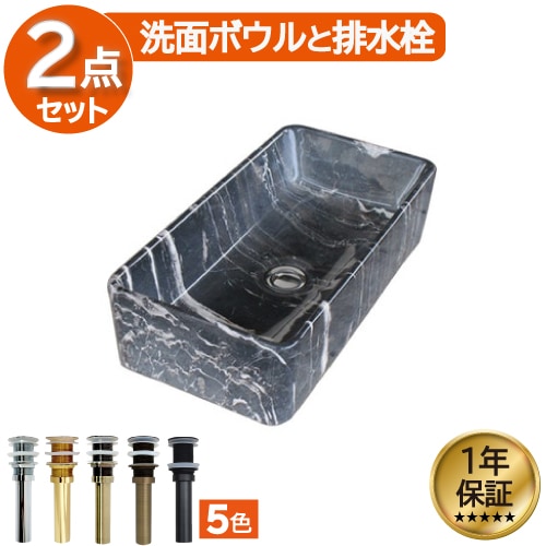 洗面ボウル 陶器 オンカウンター 置き型 ベッセル オーバーフロー無し スクエア 石目柄 マーブルブラック 幅46×奥行22×高1...