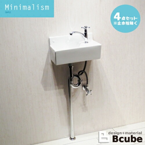 洗面ボウルセット 壁付け 陶器 洗面ボウル+単水栓+プッシュアップ式排水栓+トラップ 4点セット MIN-33 INK-04050...