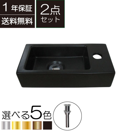 洗面ボウル 陶器 オンカウンター 置き型 ベッセル オーバーフロー無し スモール スクエア ブラック(黒) 幅37×奥行18.5×...