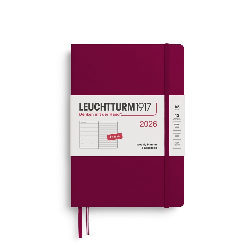 ウィークリーレフト ミディアム(A5) ポートレッド 2026年