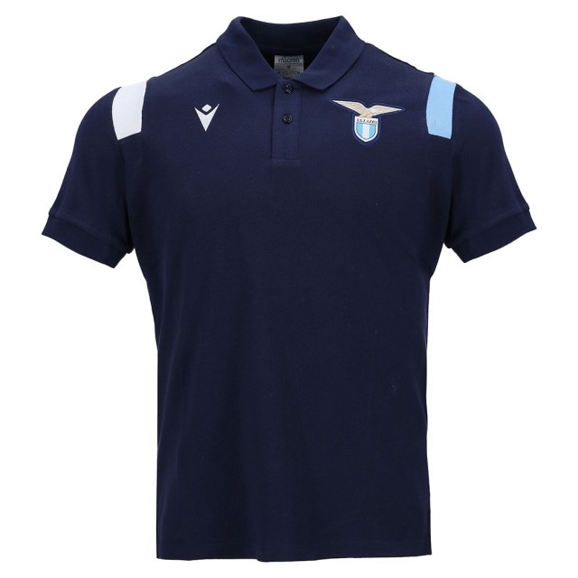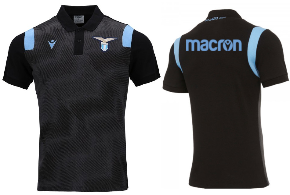 世界市場独占!20/21 ラツィオ・オフィシャル選手同様の背中上部に\"MACRON\"ロゴ付き\"プレマッチ\"ポロシャツ:ブラ...