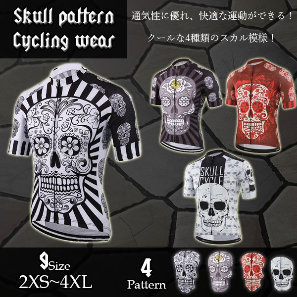 【セール】即納 安い ドクロ スカル プリント サイクルジャージ 半袖 メンズ サイクリング ロードバイク メンズ 自転車 安い ...