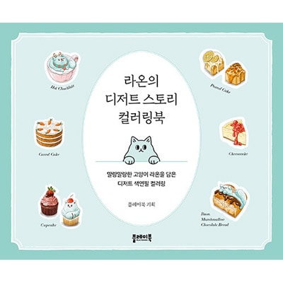 韓国書籍 可愛いミント色の猫ラオンを入れた25種類のデザート色鉛筆カラーリング 「ラオンのデザートストーリー カラーリングブック」...