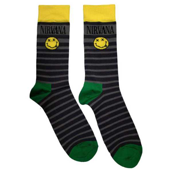 NIRVANA ソックス Happy Face Logo Stripes-Grey