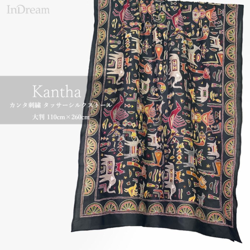 InDream カンタ 刺繍 ストール 約110×260cm スカーフ シルク インド 刺し子 インテリア テーブルクロス クリス...