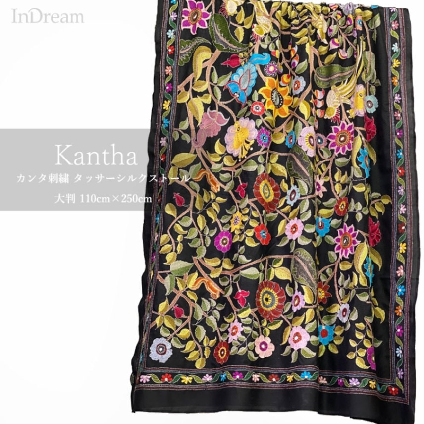 InDream カンタ 刺繍 ストール 約110×250cm スカーフ シルク インド 刺し子 インテリア テーブルクロス クリス...