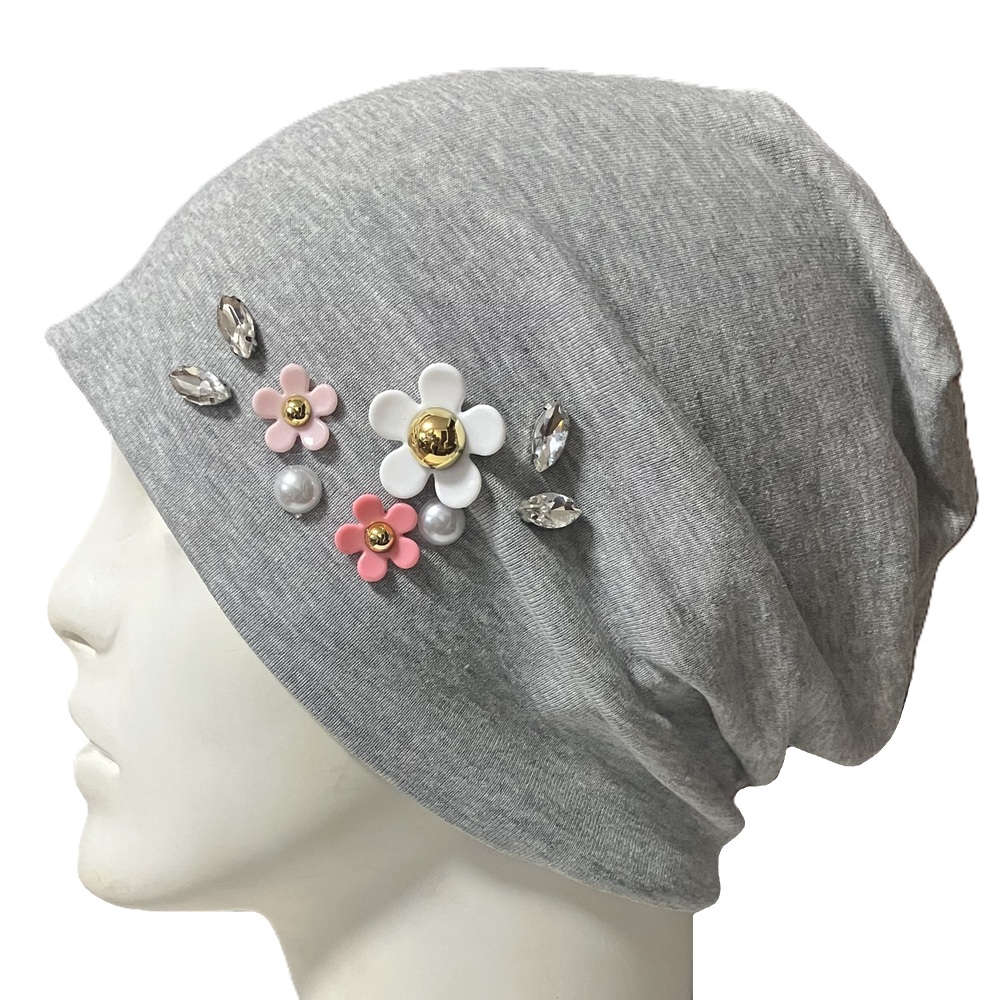 【抗がん剤治療】【医療用帽子】【ケア帽子】 ジュエルストーンキャップ:ライトグレー
